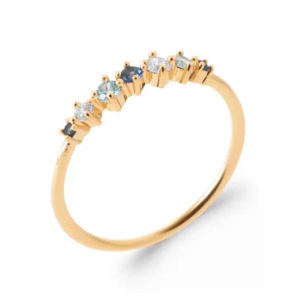 Sa composition soignée en bague en plaqué or 18 carats lui donne une allure raffinée et durable, magnifiée par la présence de saphirs synthétiques et de diamants synthétiques. L’ensemble reflète une belle qualité, à la fois précieuse et accessible. Porter cette bague fine offre une sensation agréable, presque naturelle. Elle accompagne des tenues très différentes : une blouse fluide, une robe élégante, un pull douillet ou encore un pantalon chic.