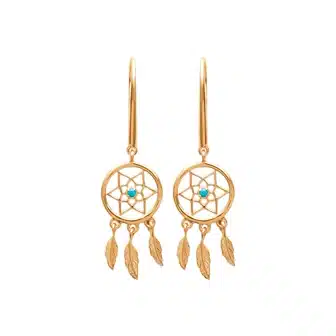L’attrape rêves superbement reproduit au centre de ces boucles d’oreilles n’est pas seulement un motif décoratif : il est un symbole puissant de protection et de positivité. La pierre turquoise synthétique, nichée au coeur de l’attrape rêves, ajoute une touche de mystère et de profondeur à ces bijoux élégants, faisant écho à la sagesse et à la tranquillité des cultures bohèmes et ethniques.