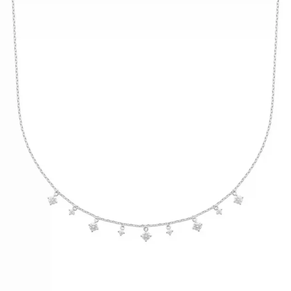 Les pendentifs en diamants synthétiques apportent une touche brillante qui se marie à merveille avec la pureté du collier en argent rhodié. Le résultat donne un bijou fiable, confortable et lumineux au fil des journées.